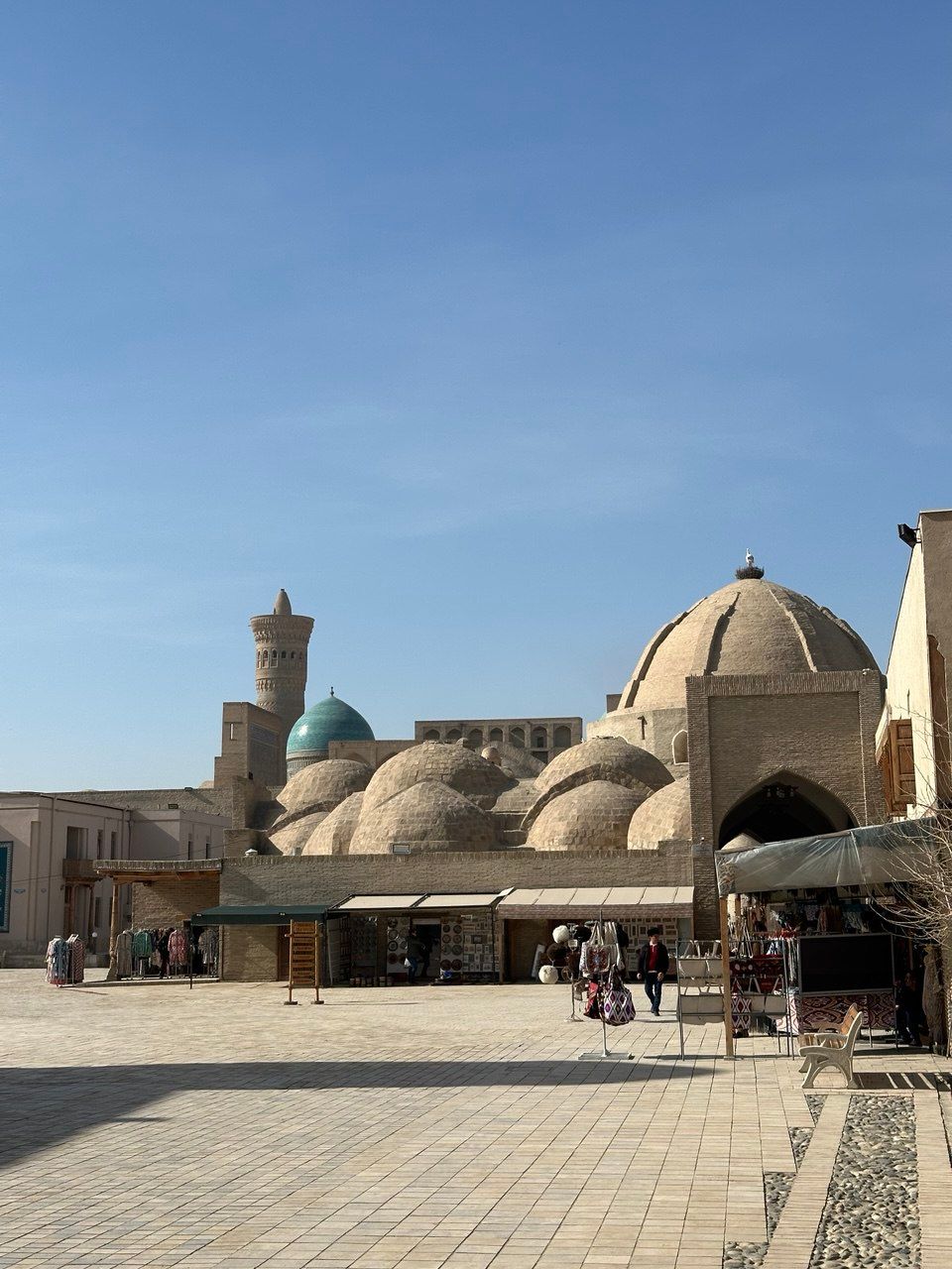 Далее маршрут логично продолжить к торговым куполам. В этих крытых рядах до сих пор работают ремесленные лавки с традиционными изделиями: работами чеканщиков и ювелиров, бухарским шёлком и керамикой. Среди популярных сувениров — металлические ножницы в форме птиц, которые часто привозят из Узбекистана.