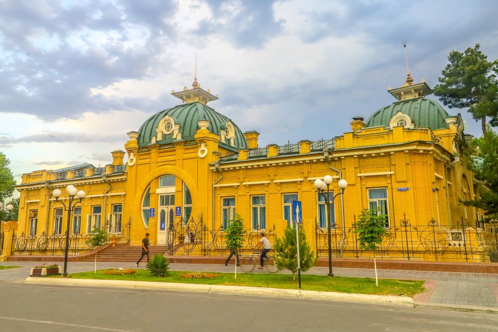 Дальше — здания имперского периода: Дом губернатора, Дом офицеров, Старая гимназия. Архитектура отличается от привычной узбекской и раскрывает другой исторический пласт.