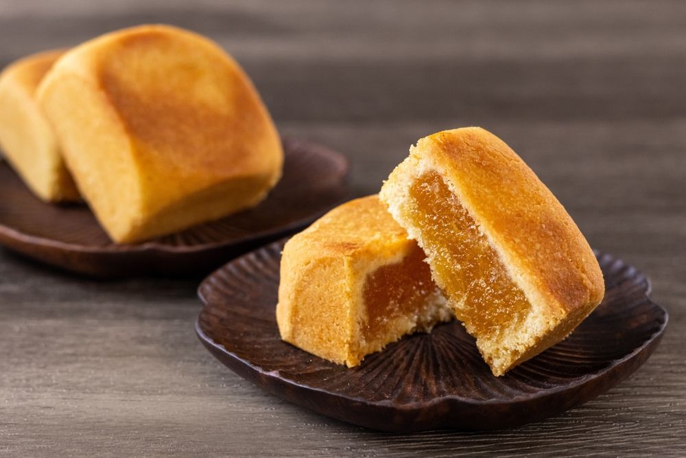 Первое место занимает ананасовый пирог — сладкий, китайский символ удачи. Внешне это небольшие золотистые «кирпичики» в красивой упаковке. Их главный плюс — контраст рассыпчатого песочного теста и плотной сладко-кислой начинки. Классический вариант делают не из чистого ананаса, а из смеси ананаса с зимней дыней, поэтому начинка получается волокнистой и не слишком водянистой. Более дорогая версия из 100% ананаса имеет ярко выраженную кислинку.