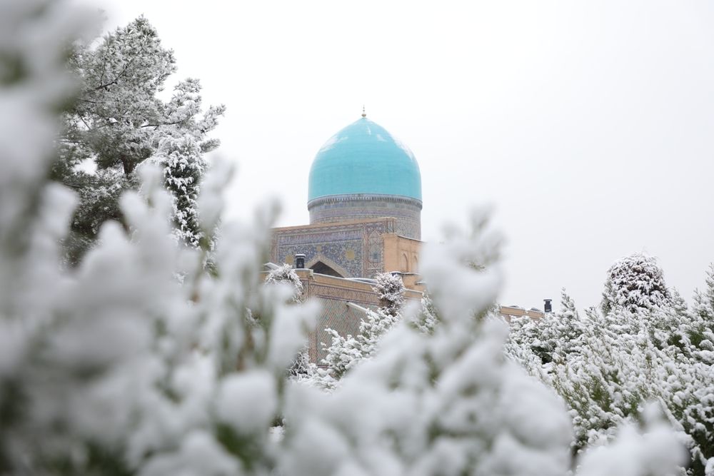 В Самарканде зимой заметно спокойнее, чем в туристический сезон, и это идёт городу на пользу. Туристов меньше, поэтому можно без спешки рассматривать детали архитектуры и заходить в памятники без длинных очередей. Основную достопримечательность — площадь Регистан, медресе Улугбека, Шердор и Тилля-Кари подсвечивают, и вечером они выглядят совсем иначе, чем днём.