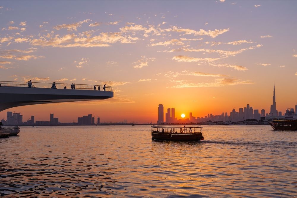 An’anaviy yog‘och dau qayig‘ida sayr qilish yaltiroq osmono‘par binolar va eski savdo kvartallari o‘rtasidagi farqni suvdan turib ko‘rish imkonini beradi. Hashamatli yaxtalardan farqli o‘laroq, bunday kruizlar ko‘pincha arab taomlaridan iborat kechki ovqat va xalq raqslarini o‘z ichiga oladi, bu esa eski savdo portining tarixini ortiqcha pafossiz his qilishga yordam beradi.