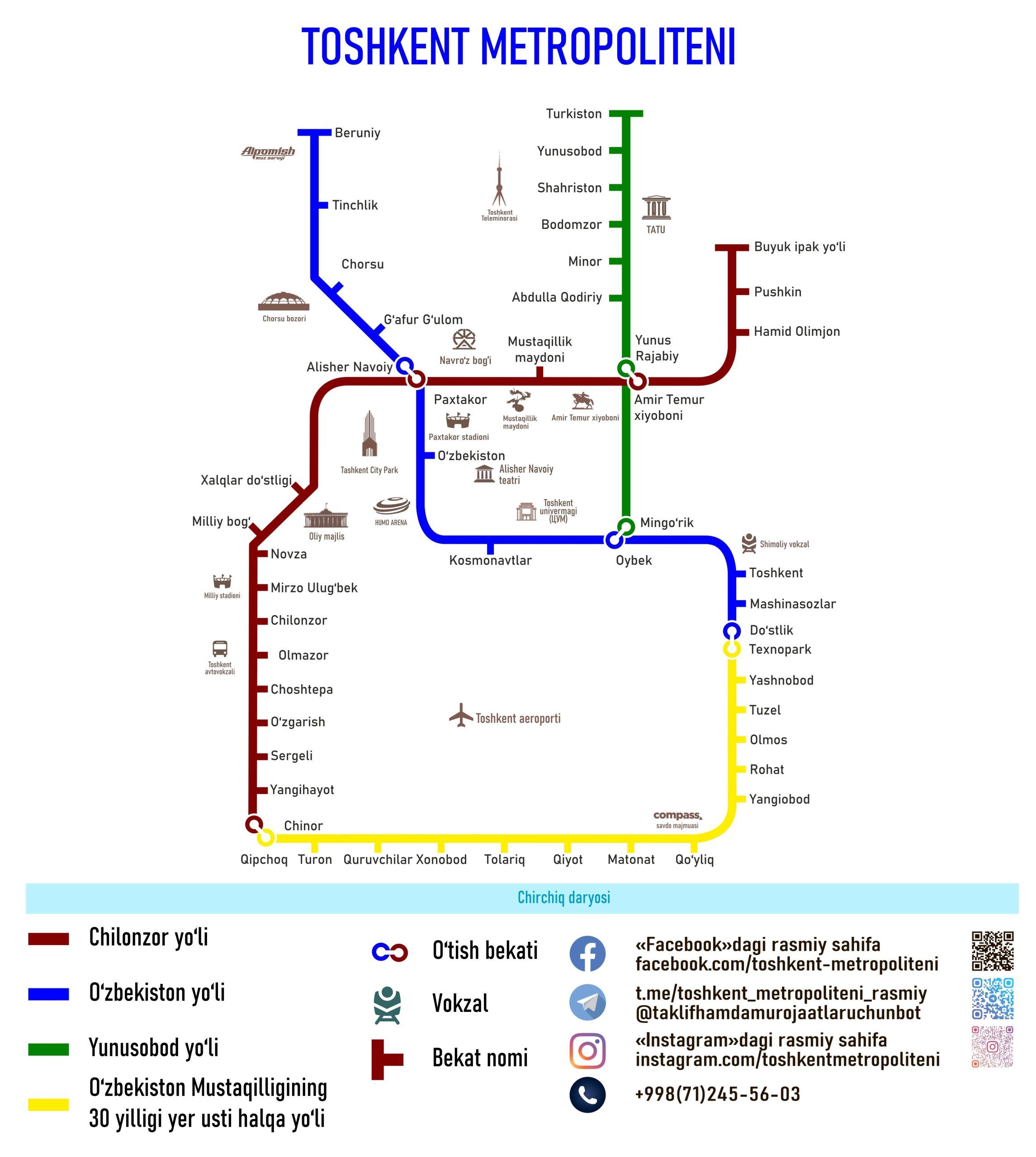 Toshkentda metrodan foydalanish: yo‘nalishlar sxemasi, ish tartibi va yo‘l haqi
