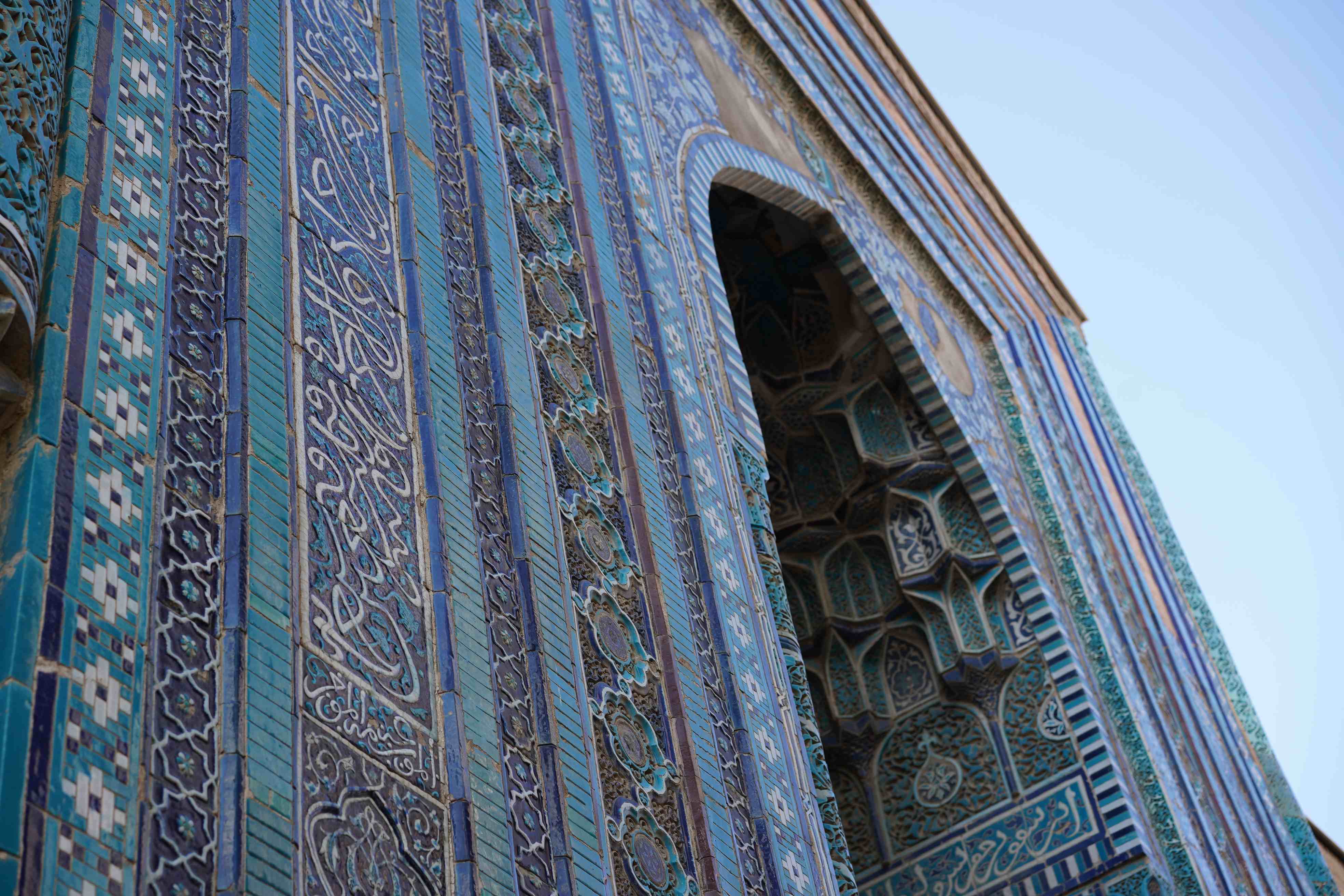 Majmua quyi, o‘rta va yuqori darajalardan iborat bo‘lib, ular ravoq-gumbazli yo‘laklar orqali bog‘langan. Sayr qilish dekorativ san’at tarixini izchil kuzatish imkonini beradi: koshinkor, mozaika, o‘ymakorlik, xattotlik va maqbaralar qoplamalaridagi ko‘k rangning o‘nlab tuslarini ko‘rish mumkin.
